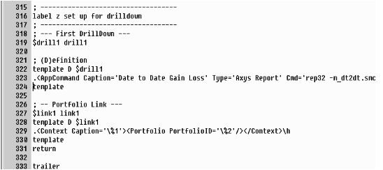 The last line of the AppCommand statement passes the reporting currency, the portfolio name, and other report settings from the original report to the drilldown report. Hang in there, we’re almost finished!